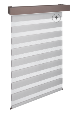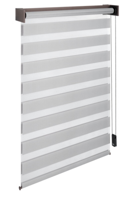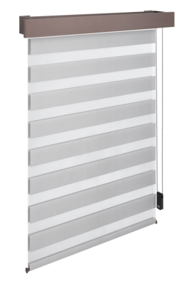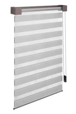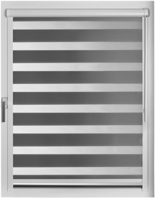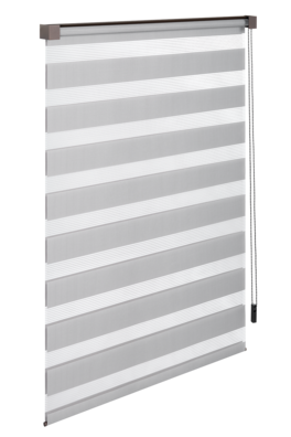 Die perfekte Symbiose aus Rollo und Jalousie. Abwechselnd blickdicht und transparent gewebte Streifen ermöglichen stufenlose Lichtregulierung mit angenehm sanftem Raumlicht.